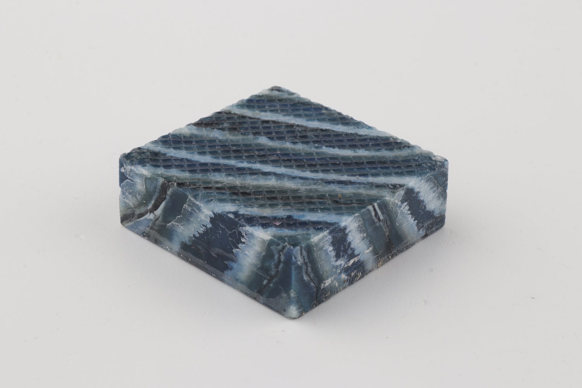This is a cross-cut, stabilised woolly mammoth molar piece (Mammuthus primigenius). This square block can be precision-cut, drilled, sanded, polished etc. to achieve the desired results. Consistent width and thickness. The colour of the molar is blue.