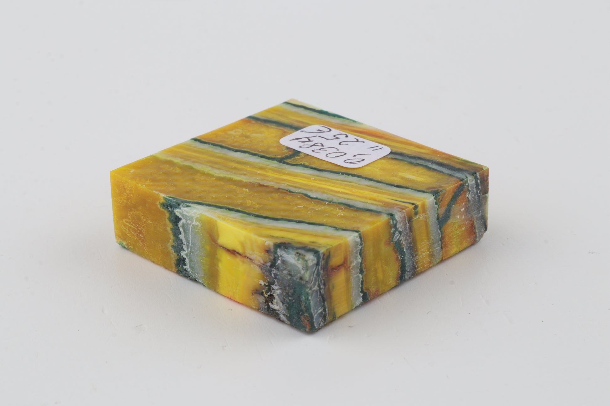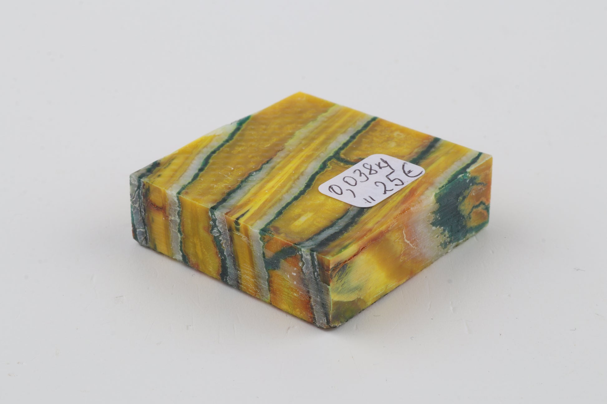 This is a cross-cut, stabilised woolly mammoth molar piece (Mammuthus primigenius). This square block can be precision-cut, drilled, sanded, polished etc. to achieve the desired results. Consistent width and thickness. The colour of the molar is yellow.