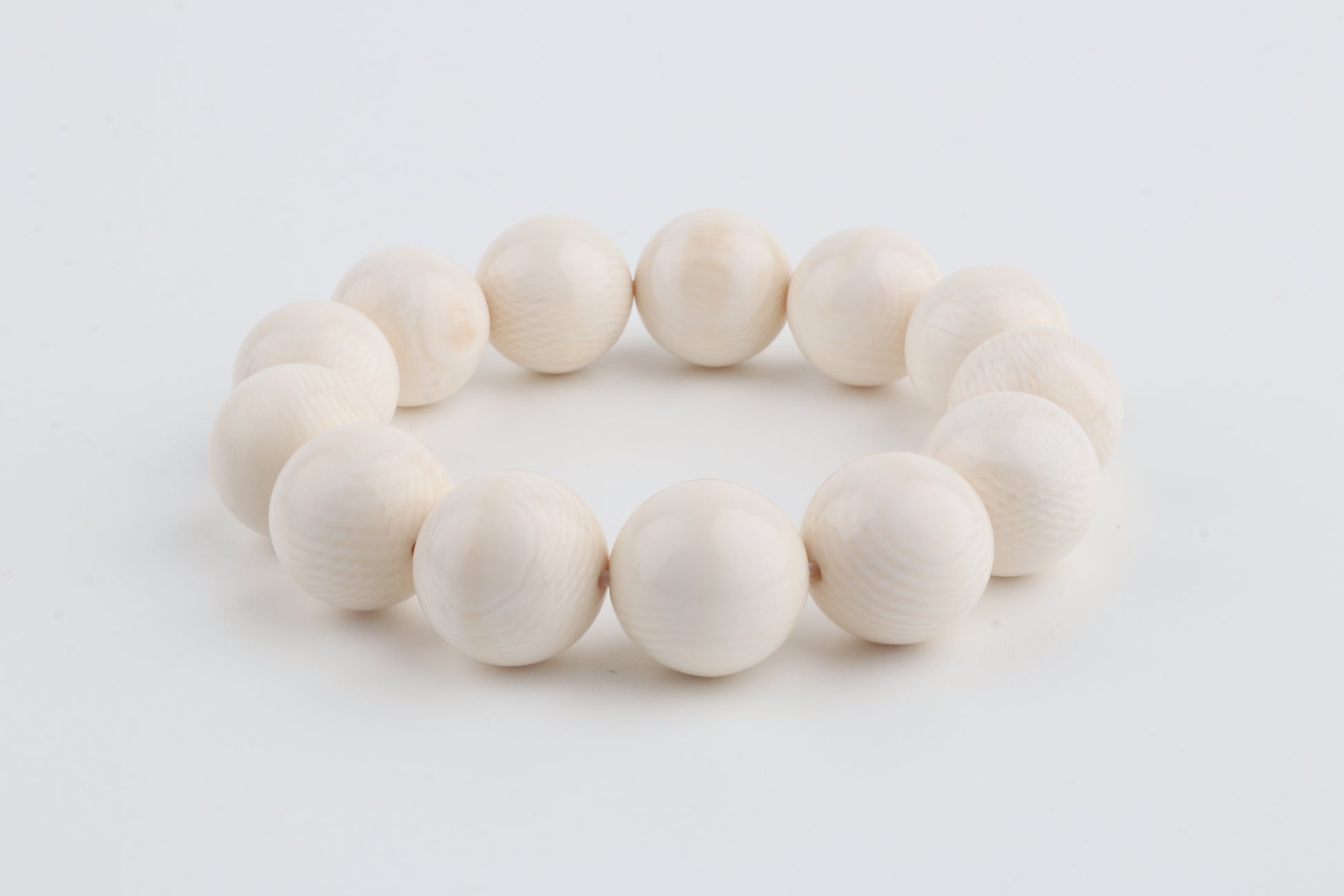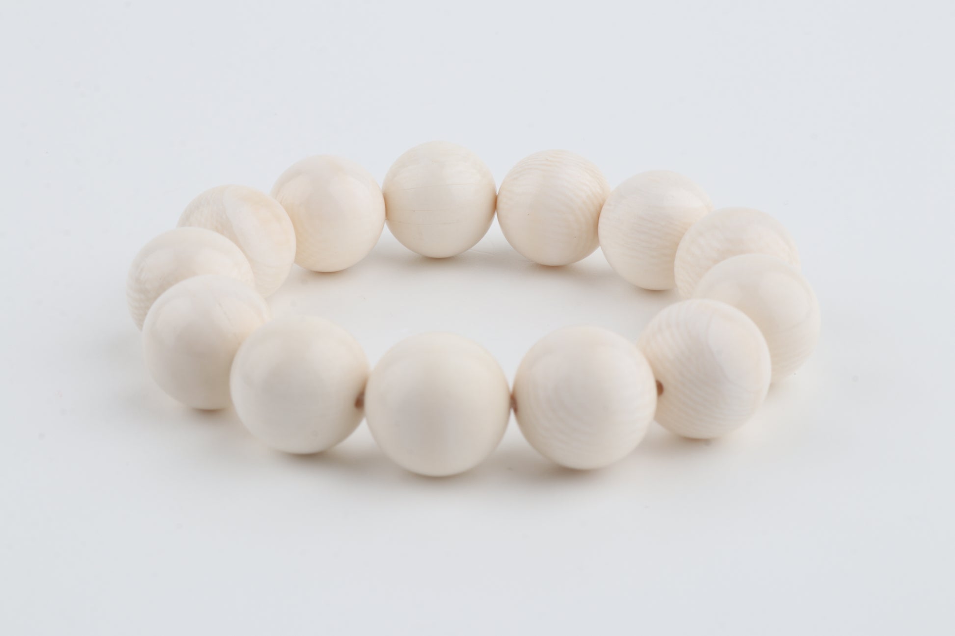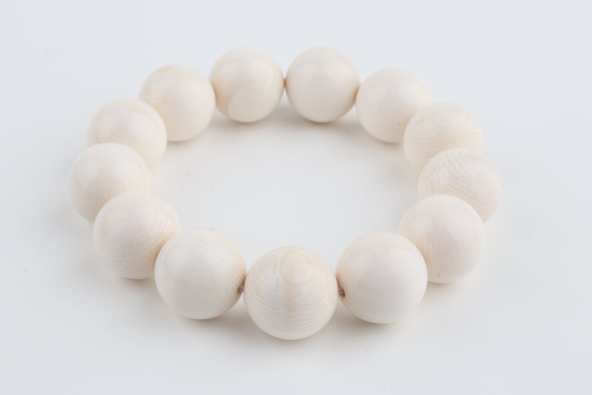This exceptional bracelet is composed entirely of 14 mm mammoth ivory beads (Mammuthus primigenius), showcasing the natural creamy hue and fine grain of genuine Ice Age material.
