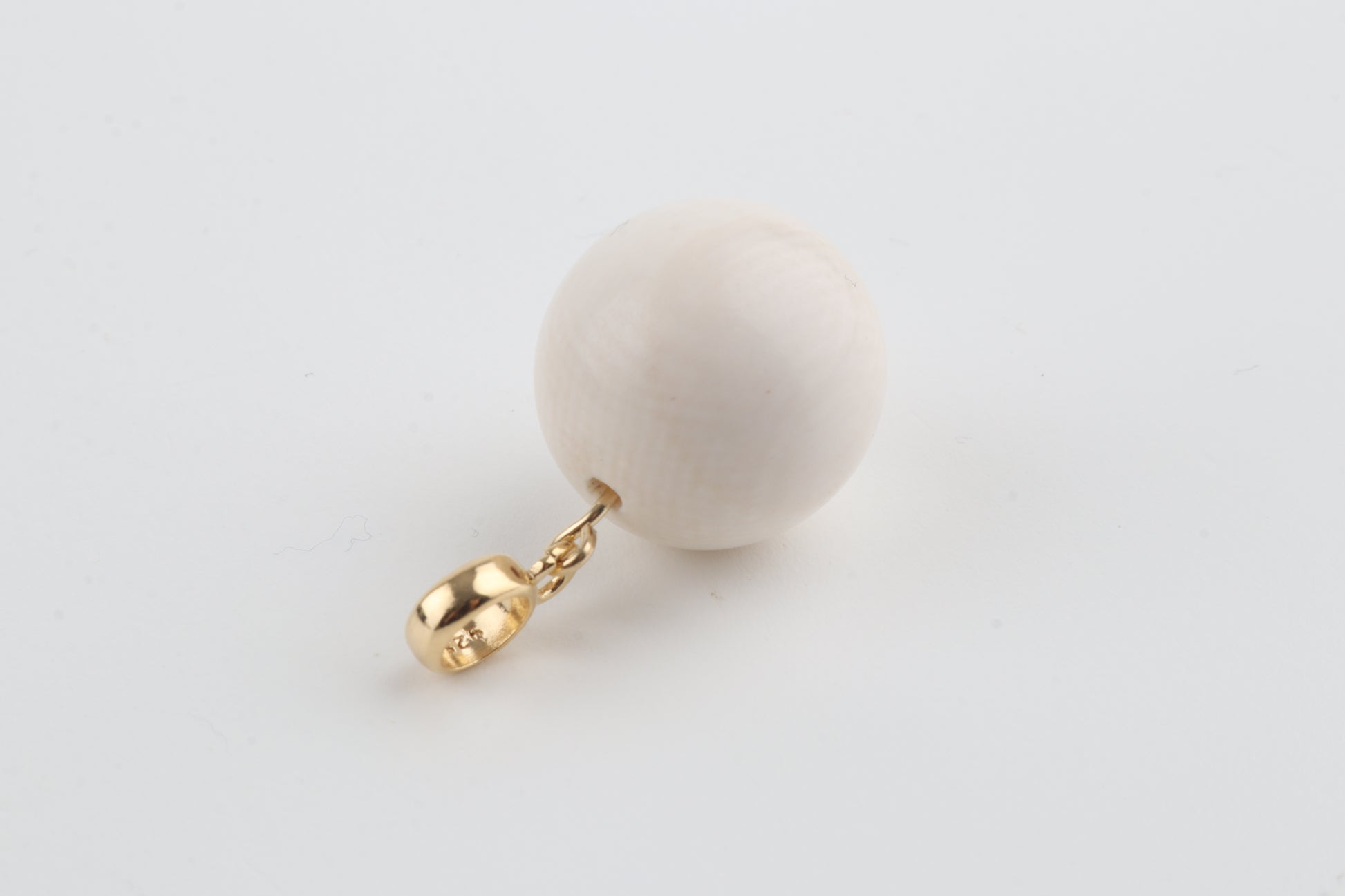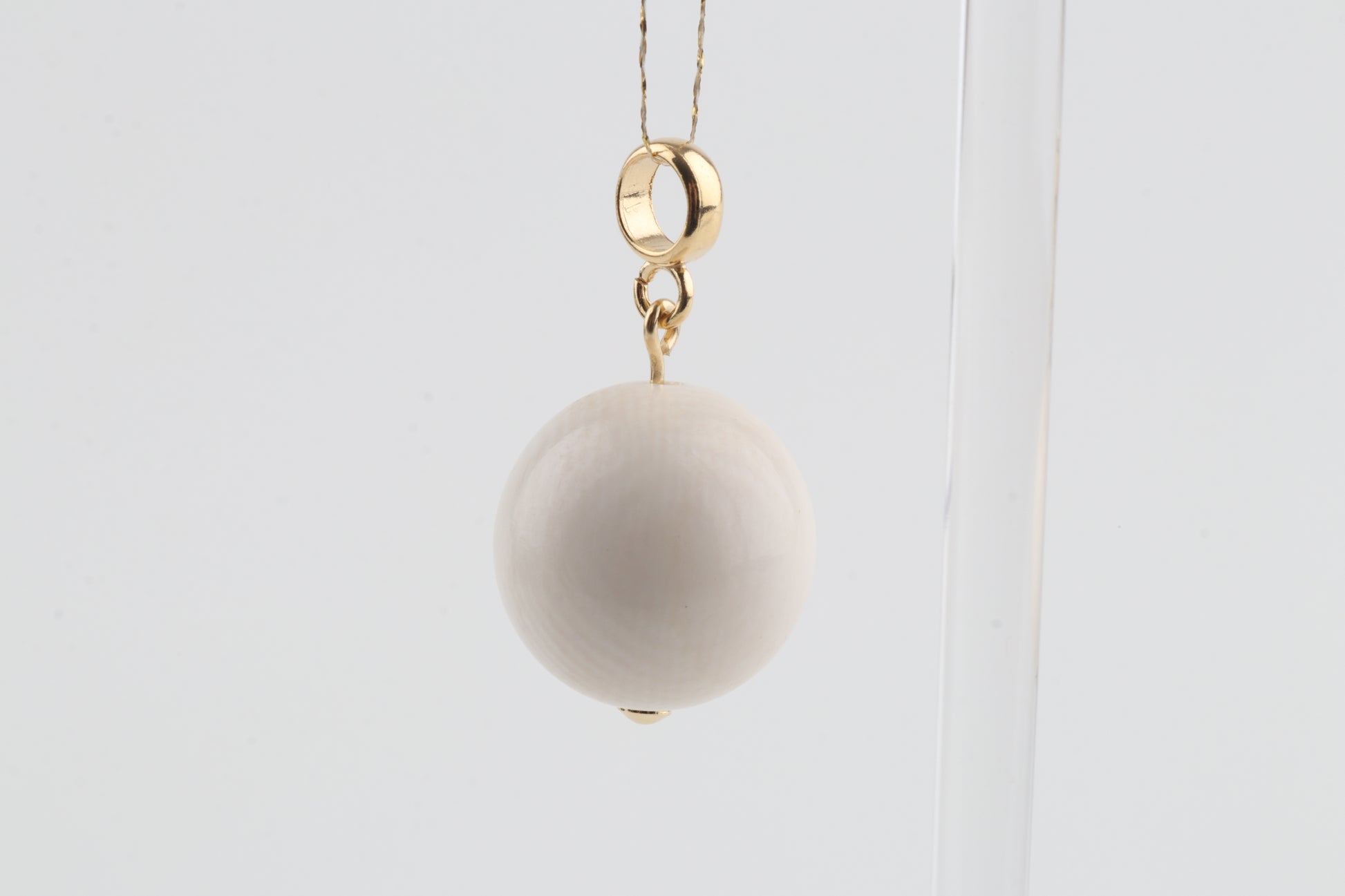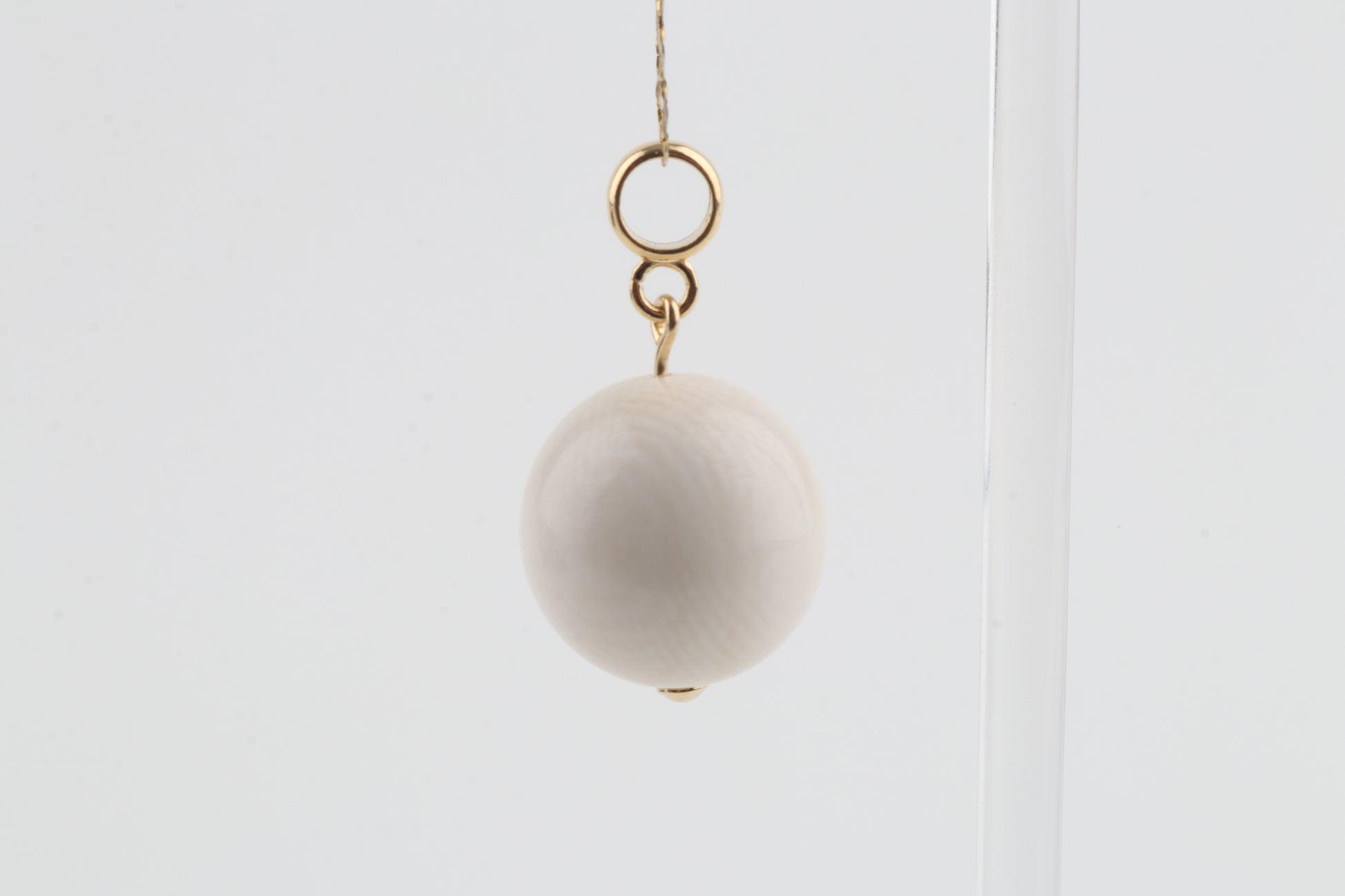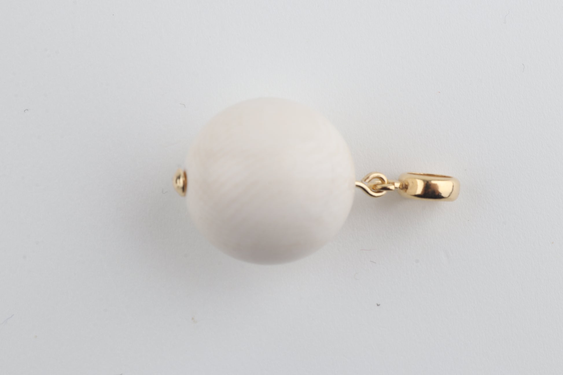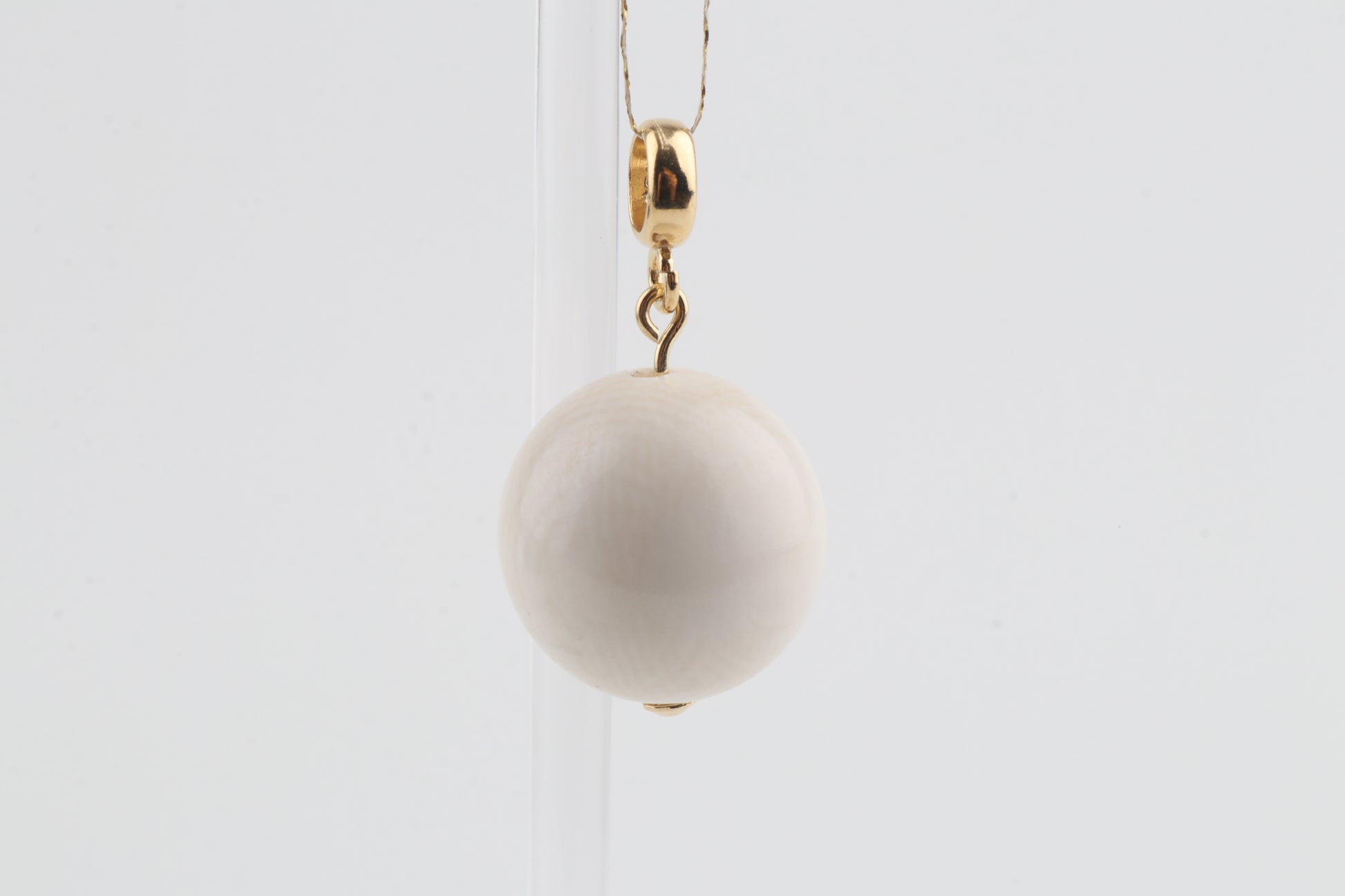 This minimalist pendant features a mammoth ivory sphere (Mammuthus primigenius), suspended from a simple gold-plated sterling silver bail. The smooth, creamy surface of the mammoth ivory highlights its natural grain and elegant warmth, creating a timeless and versatile piece suitable for both everyday wear and refined styling.