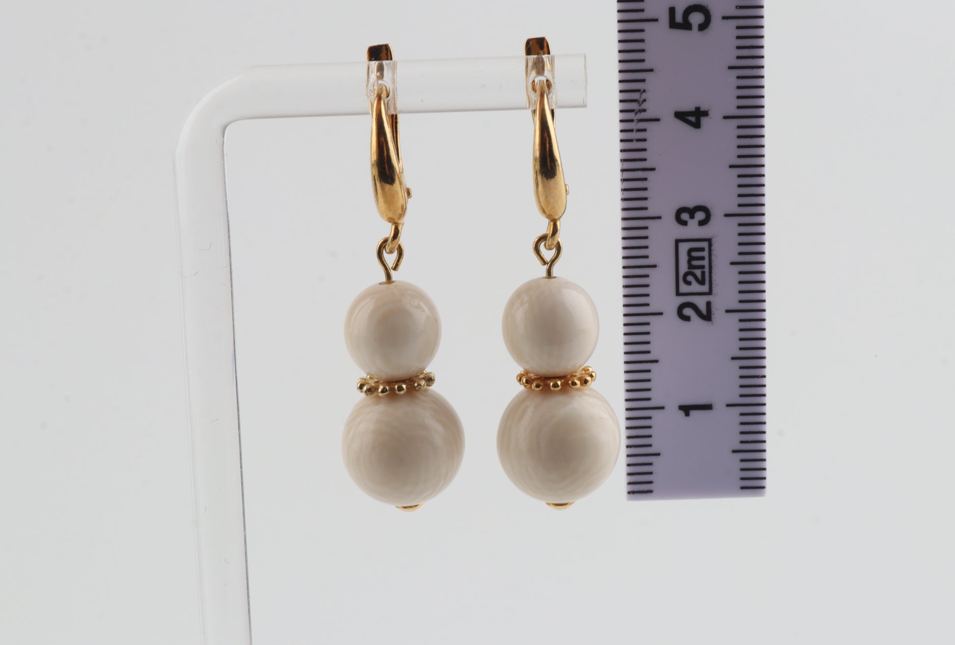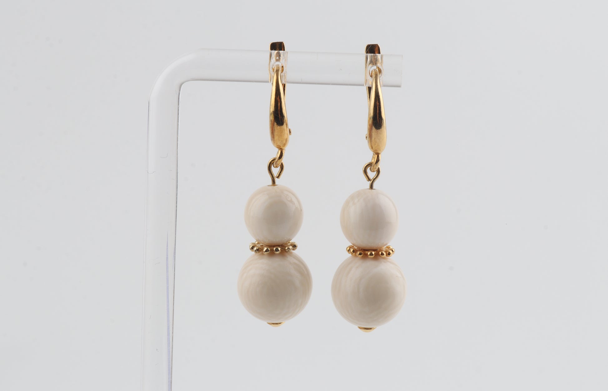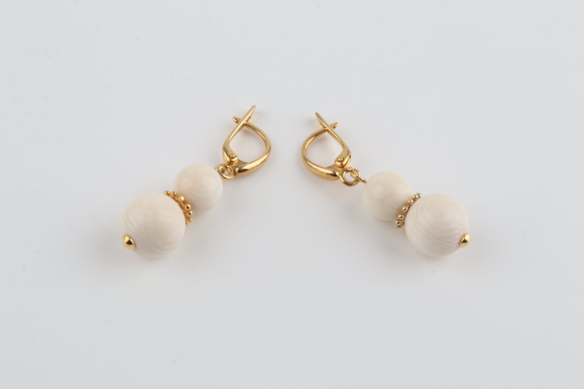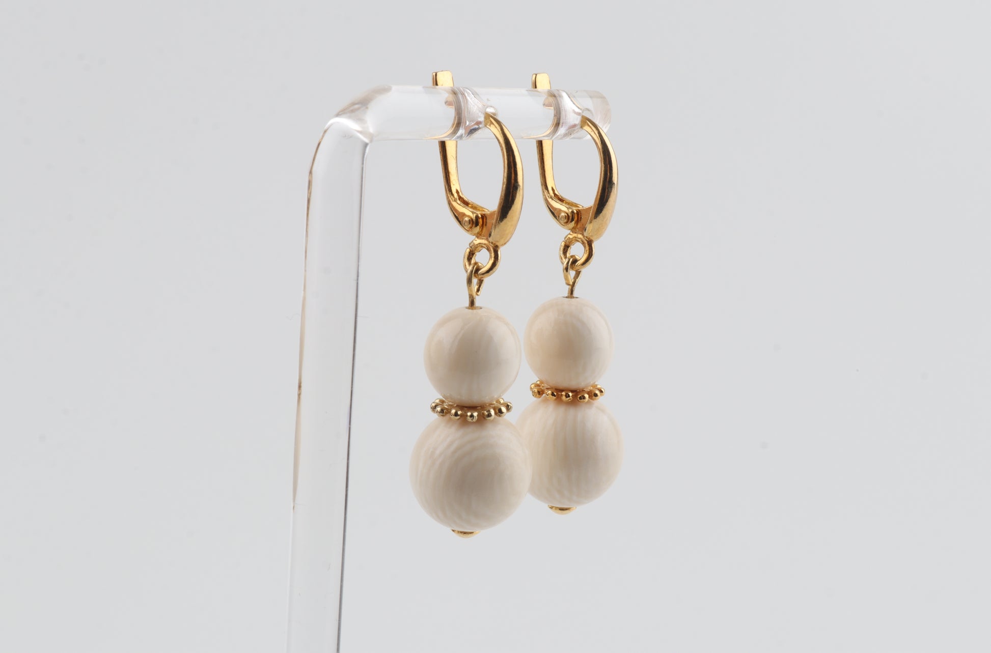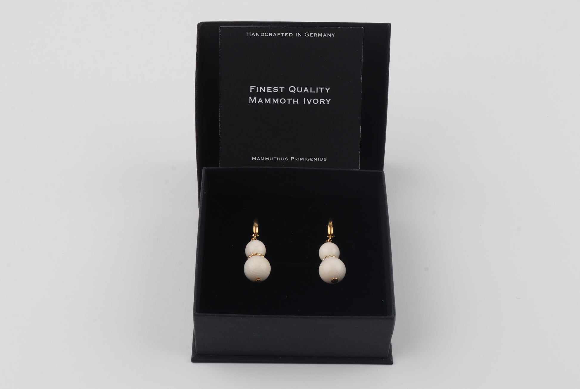 These delicate drop earrings feature genuine mammoth ivory beads (Mammuthus primigenius) arranged in a graceful vertical composition. The soft, natural ivory tone highlights the organic beauty of this rare material.