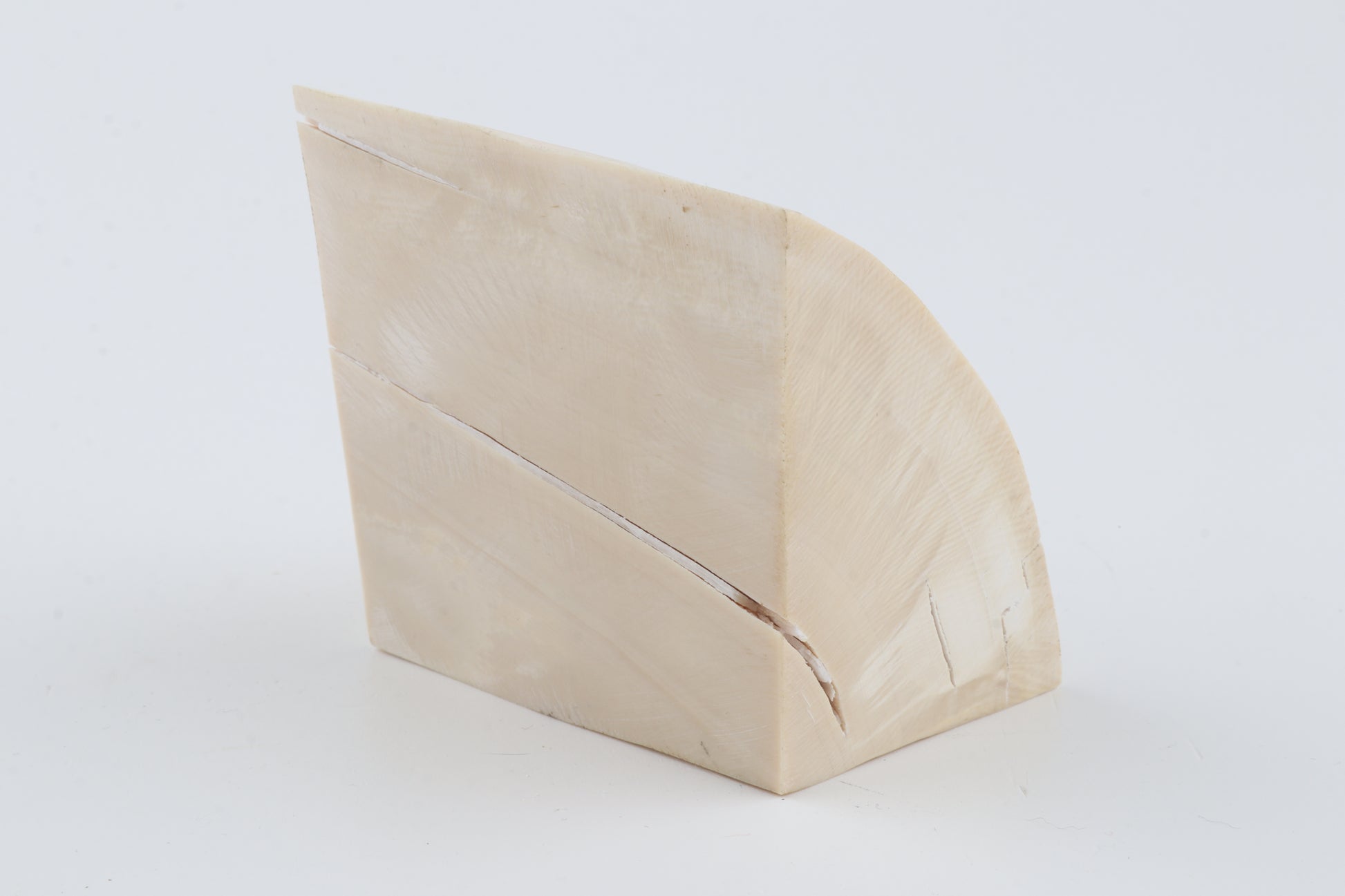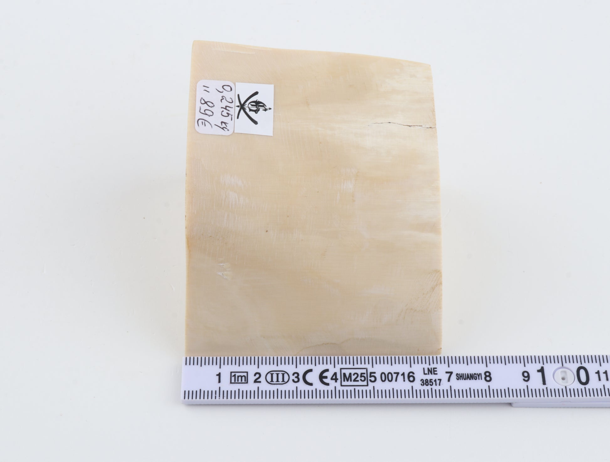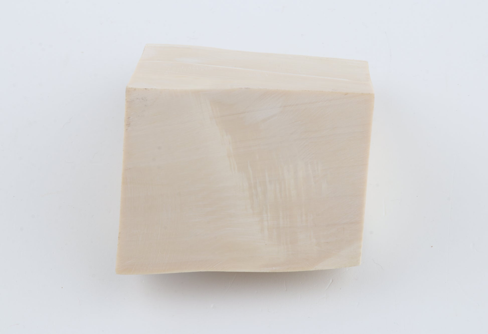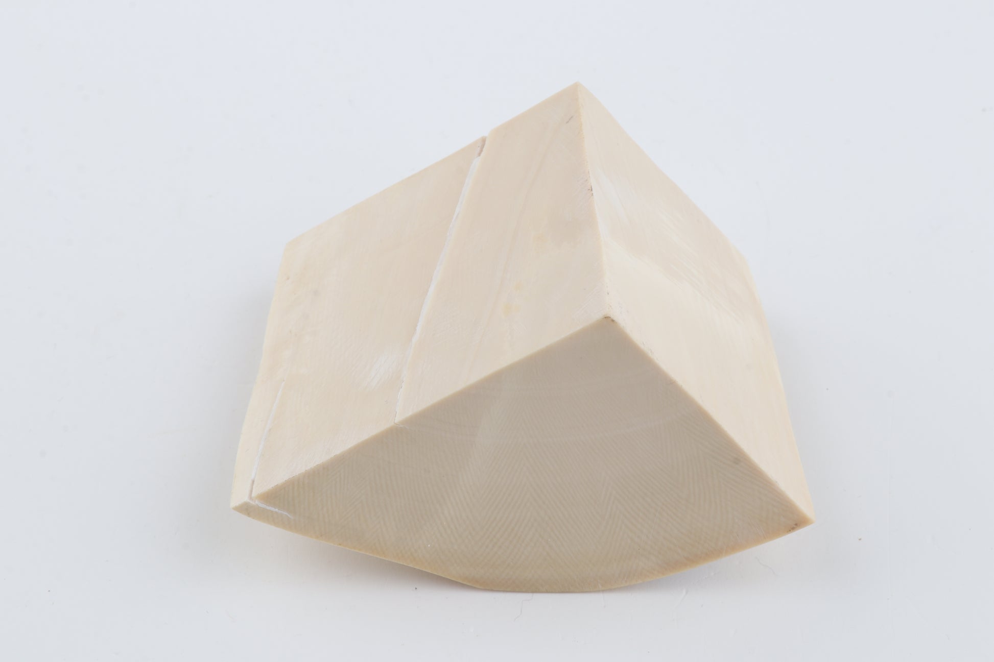 This is a premium-quality piece of Siberian woolly mammoth ivory (Mammuthus primigenius). The ivory is naturally dense and solid, despite some small cracks. One cross-cut section is slightly larger than the other. Plenty of reserves on both ends. Please carefully look at the pictures for precise dimensions. The piece displays its original, natural ivory tone.