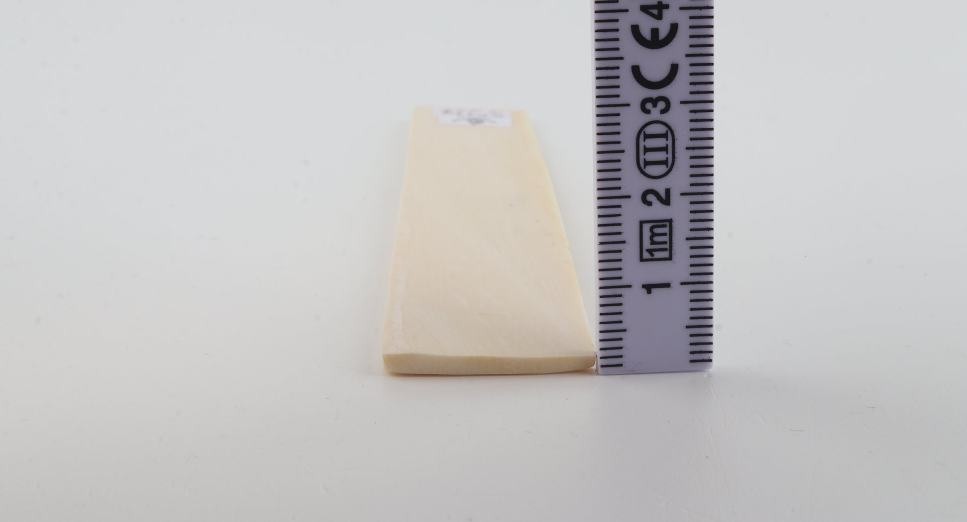 This is a top-quality piece of Siberian woolly mammoth ivory (Mammuthus primigenius). The ivory is rock-solid, completely dry and without cracks. Consistent width and thickness with reserves on both ends. The colour of the ivory is white.