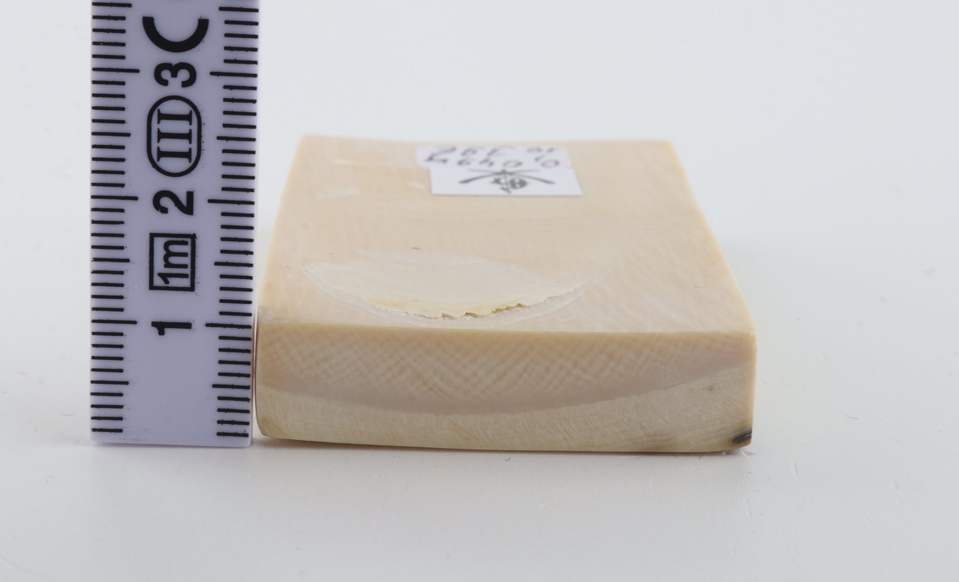 This is an immaculate piece of Siberian woolly mammoth ivory (Mammuthus primigenius). The ivory is naturally dense and solid, without cracks. Consistent width and thickness with reserves on both ends. The piece displays its original, natural ivory tone.
