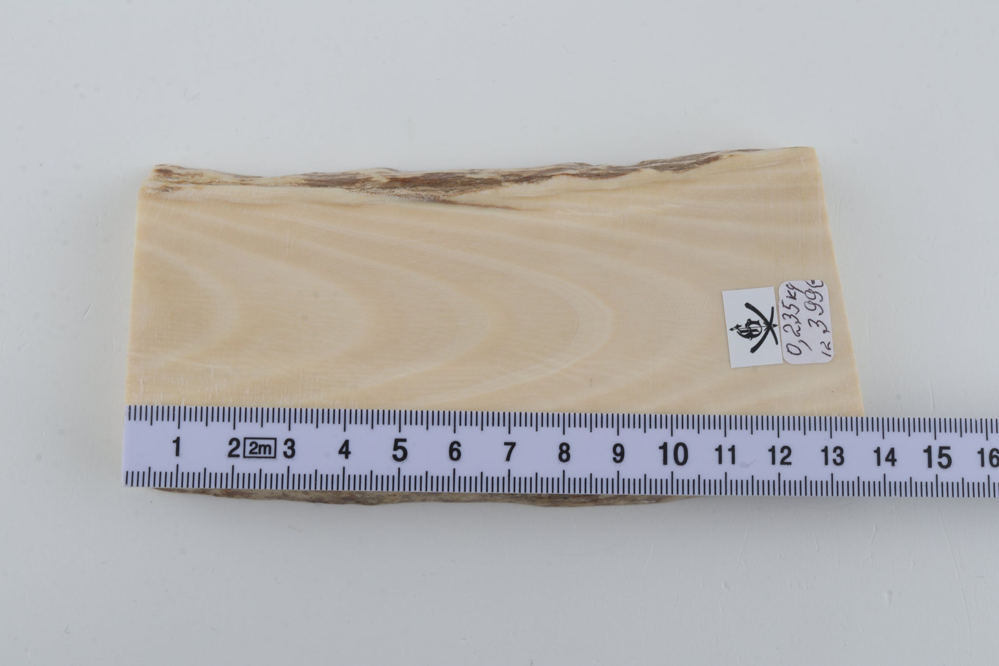 This is an immaculate piece of Siberian woolly mammoth ivory (Mammuthus primigenius). The ivory is naturally dense and solid, without cracks. Tapered width and thickness with reserves on both ends: One cross-cut section is thicker and wider than the other. Please carefully look at the pictures for precise dimensions. The piece displays its original, natural ivory tone. The colour of the outer layer of bark is beige.