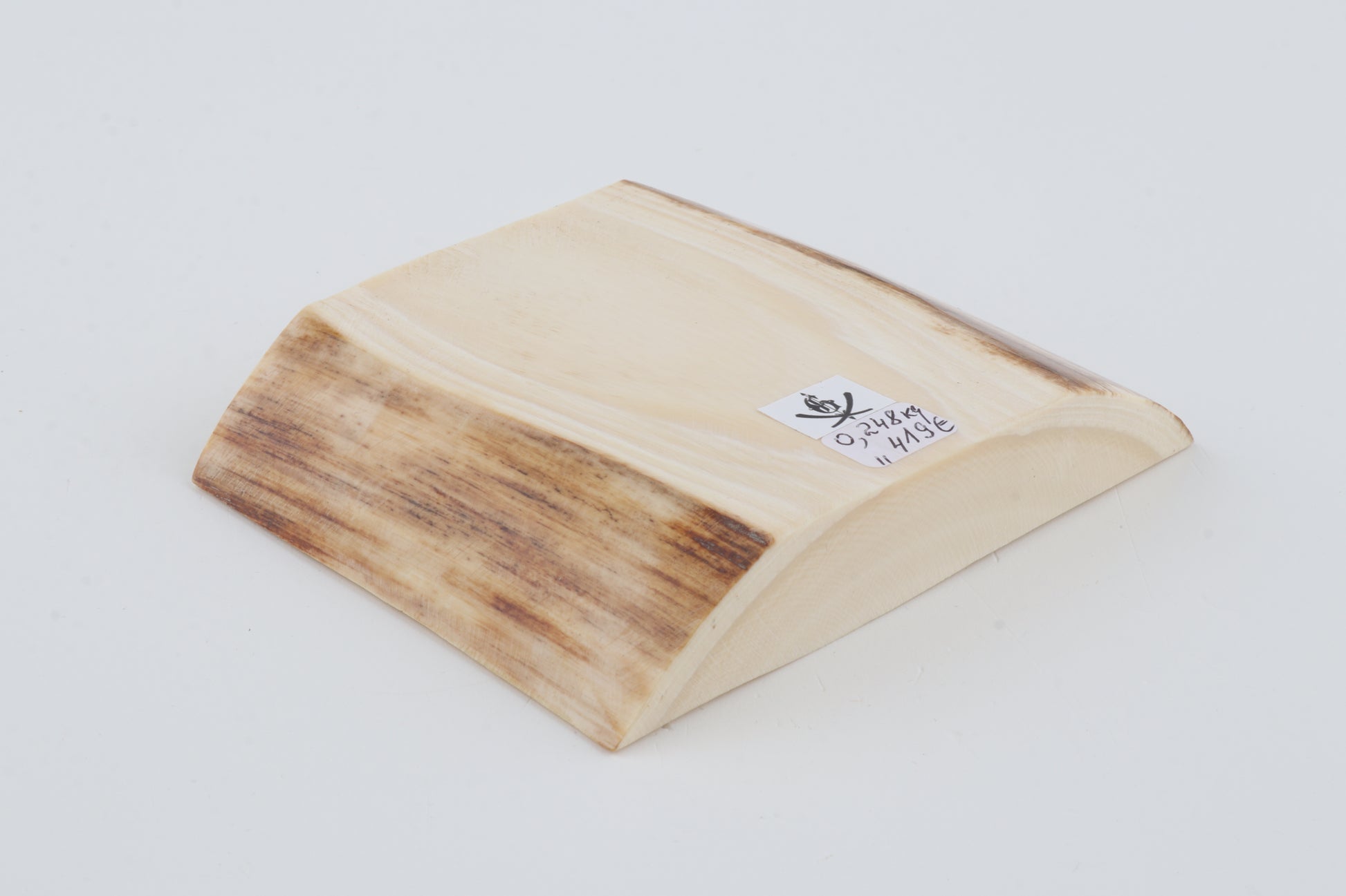 This is a premium-quality piece of Siberian woolly mammoth ivory (Mammuthus primigenius). The ivory is naturally dense and solid, without cracks. Consistent width and thickness with reserves on both ends. The piece displays its original, natural ivory tone. The color of the outer layer of bark is brown-orange.