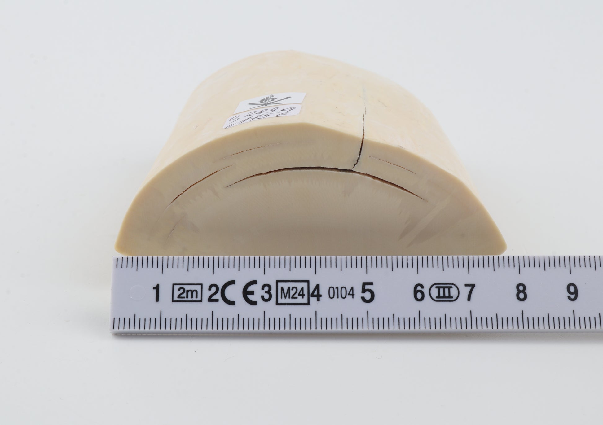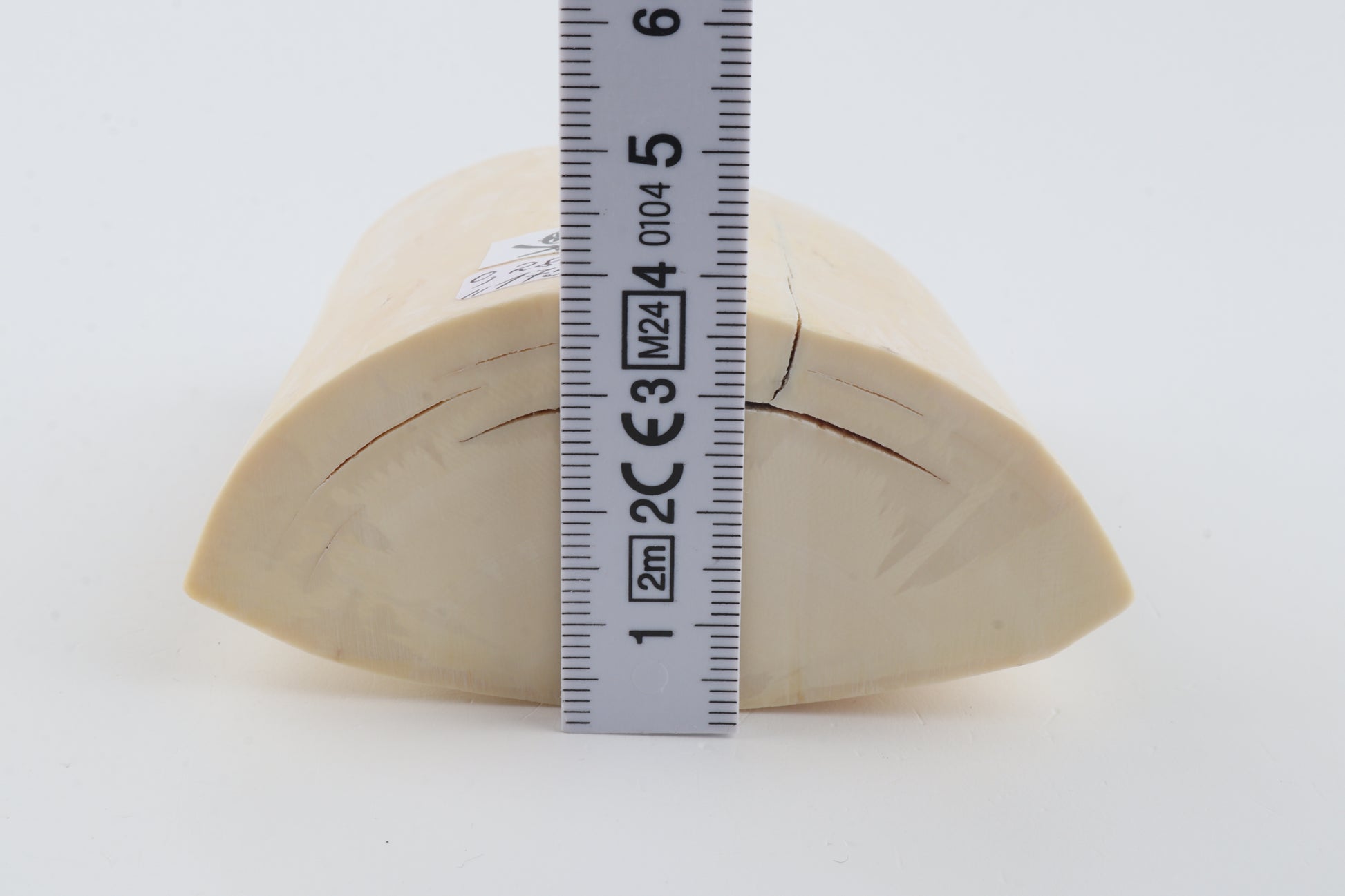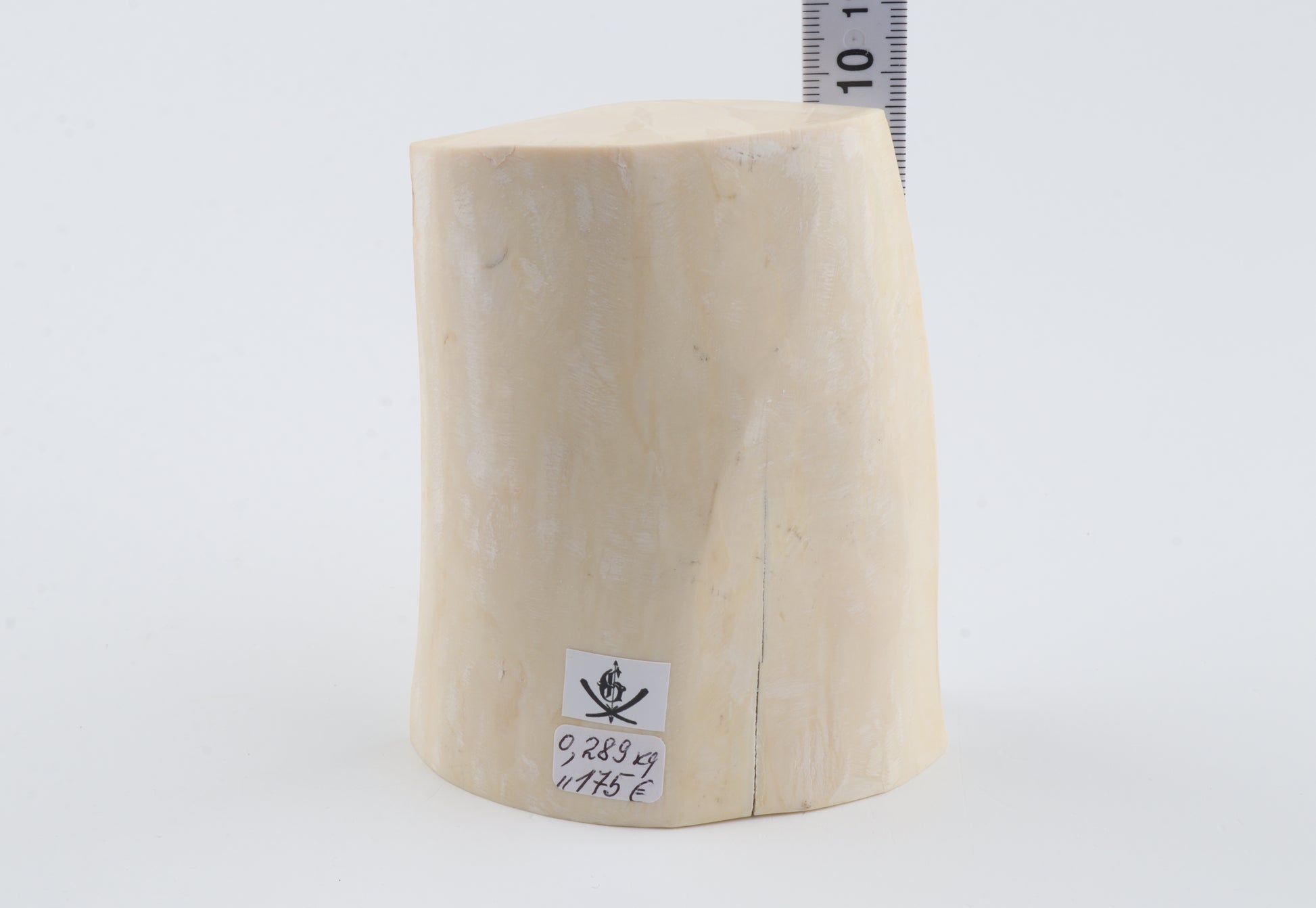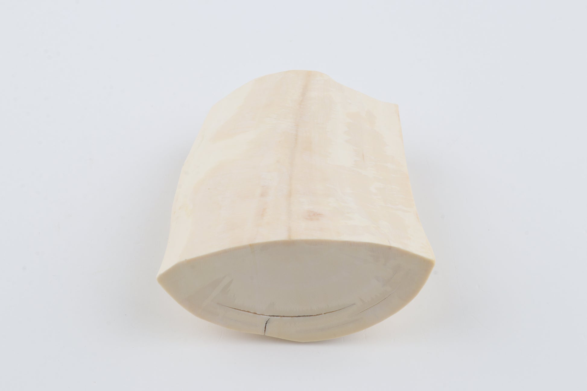 This white mammoth ivory piece is completely natural and untreated. It is not stabilized or resin-filled. All of our pieces are unique in colour, structure, and shape due to fossilisation processes and long-term climatic conditions of the Siberian permafrost. No artificial treatments or restorations have been performed unless specifically stated.